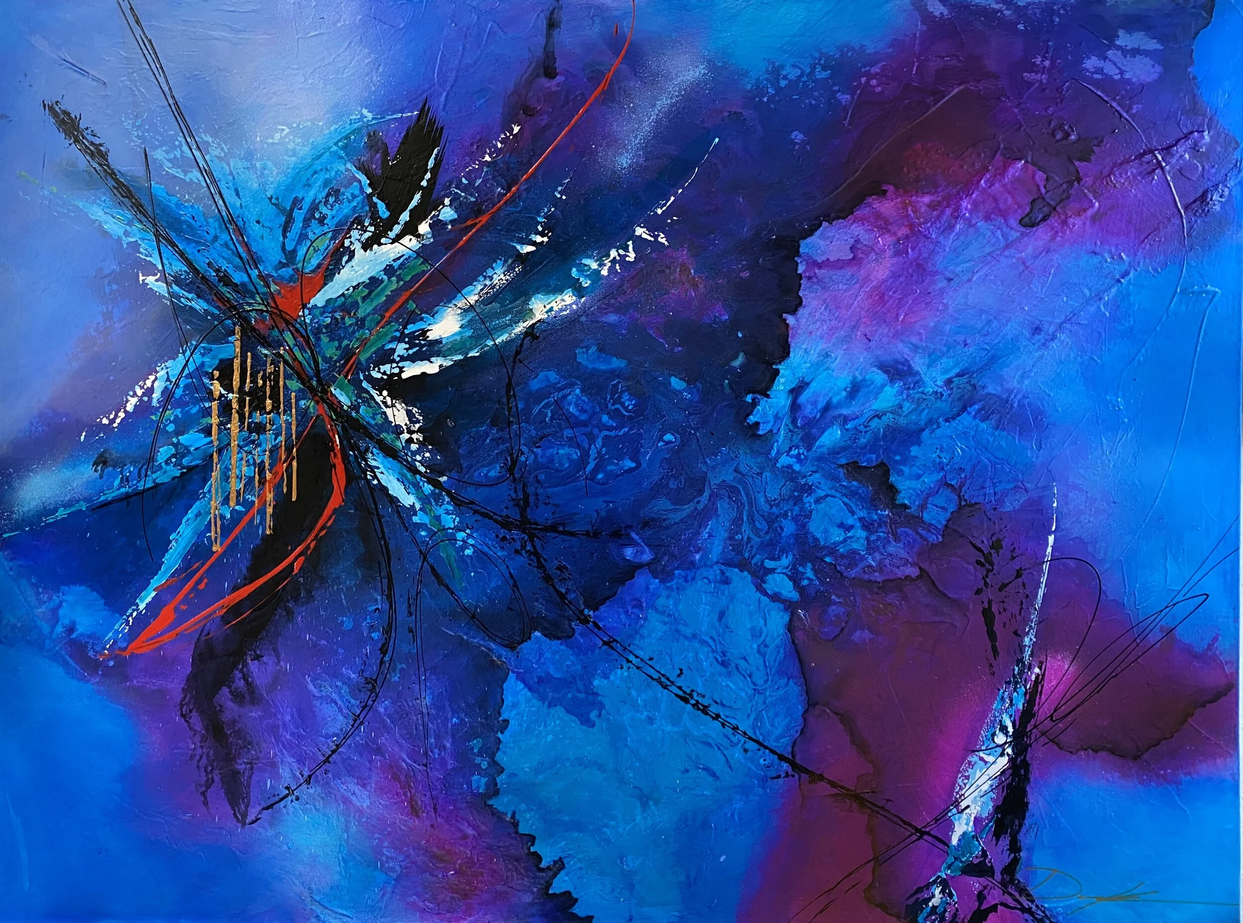 Her large-scale paintings depict hints of land and seascapes in abstract form. Her portraits and floral paintings represent her unique perspective. Dana’s work is decidedly three dimensional and demands a live experience—it is not possible to perceive her paintings' rich textures and bold colors unless you see them in person. Each piece makes a statement.